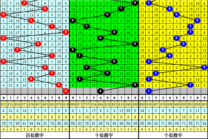 中位跨度分析:最近3期中位区分开出奖号5-1-9,最近两期跨度区分开出4、8,中位号码历史上不时两期跨度开出4、8的奖号共开出38次,其前两次奖号开出:
