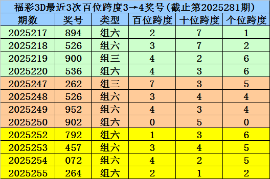 第2025247-第2025249期奖号:262、526、952,其下期奖号为:902,首位号码跨度为0;