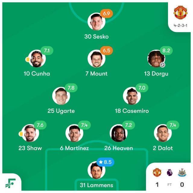 加盟以来,多尔古已代表曼联出战38场比赛,在第31次射门,终于打入了他在各项赛事中的曼联处子球,如故一记如斯精彩的凌空抽射。但多尔古的流露远不啻于此,他在本场比赛中演出着紧要扮装,唯独乌加特(62次)的触球次数比他(57次)更多。他还2次在对方禁区内触球,唯独库尼亚和舍什科(均为4次)比他更多。面临以膂力化足球著称的纽卡,多尔古本场赢下了8次招架,全场比肩最多,在中场区域4次夺回球权,还孝敬了2次抢断和2次阻止。